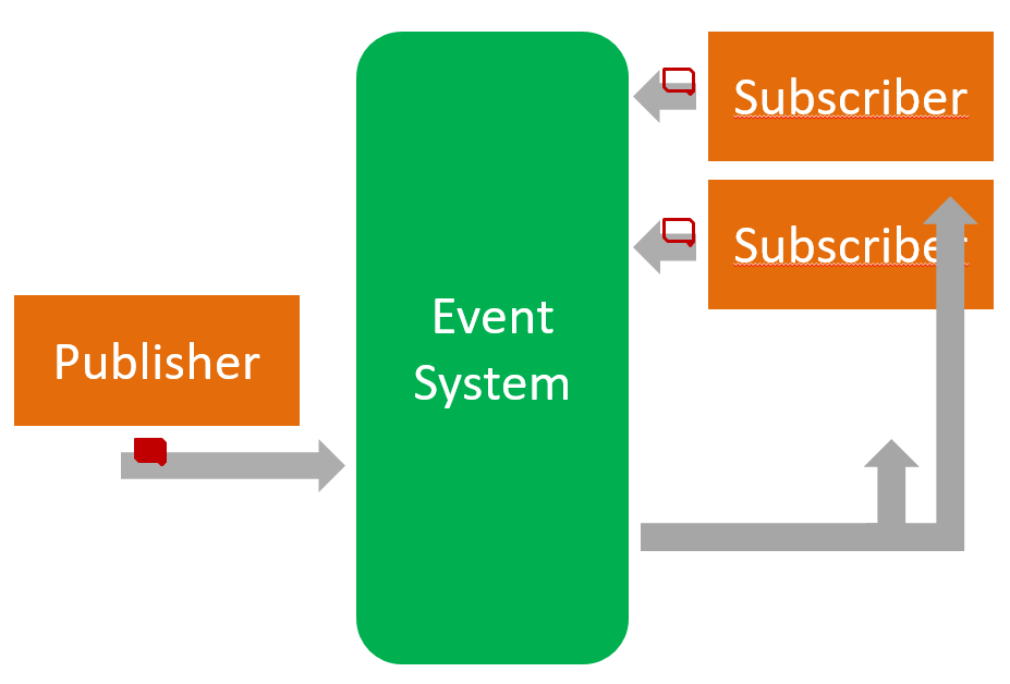 De eerste manier om aan EDA te doen is de meest eenvoudige: een Event wordt hier simpelweg verstuurd om aan te geven dat er iets is gebeurd. Bijvoorbeeld een ‘CustomerChangedEvent’ om aan te geven dat er iets werd aangepast aan een klantenfiche, of een ‘OrderPlacedEvent’ om aan te geven dat er een nieuw order is.