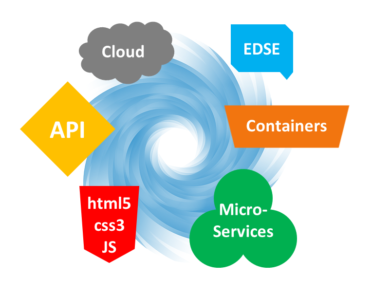Het is wel waar dat deze nexus nogal wat furore maakt, maar die kan dat, doordat er, onderliggend, een aantal andere technologische evoluties spelen, die het de software engineering wereld mogelijk maken om al deze krachten voldoende te ondersteunen. Evoluties die, als het ware, ervoor zorgen dat de software die deze nexus draaiende houdt, kan worden gebouwd en ontplooid op een beheersbare manier, zonder dat ontwikkelaars ten onder gaan aan de groeiende complexiteit. Een aantal van die evoluties vatten we hier nu samen onder de noemer “Vortex of Enablers”. (Over vele van deze technologieën hadden we het reeds eerder – volg de links voor meer informatie.)