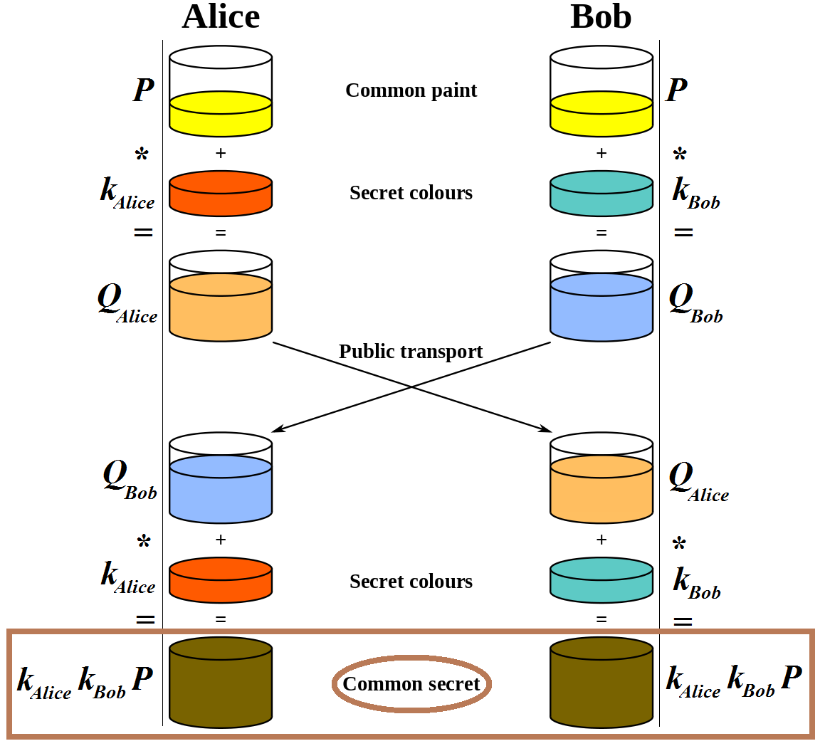 Illustration de l’idée sous-jacente au protocole ECDH.