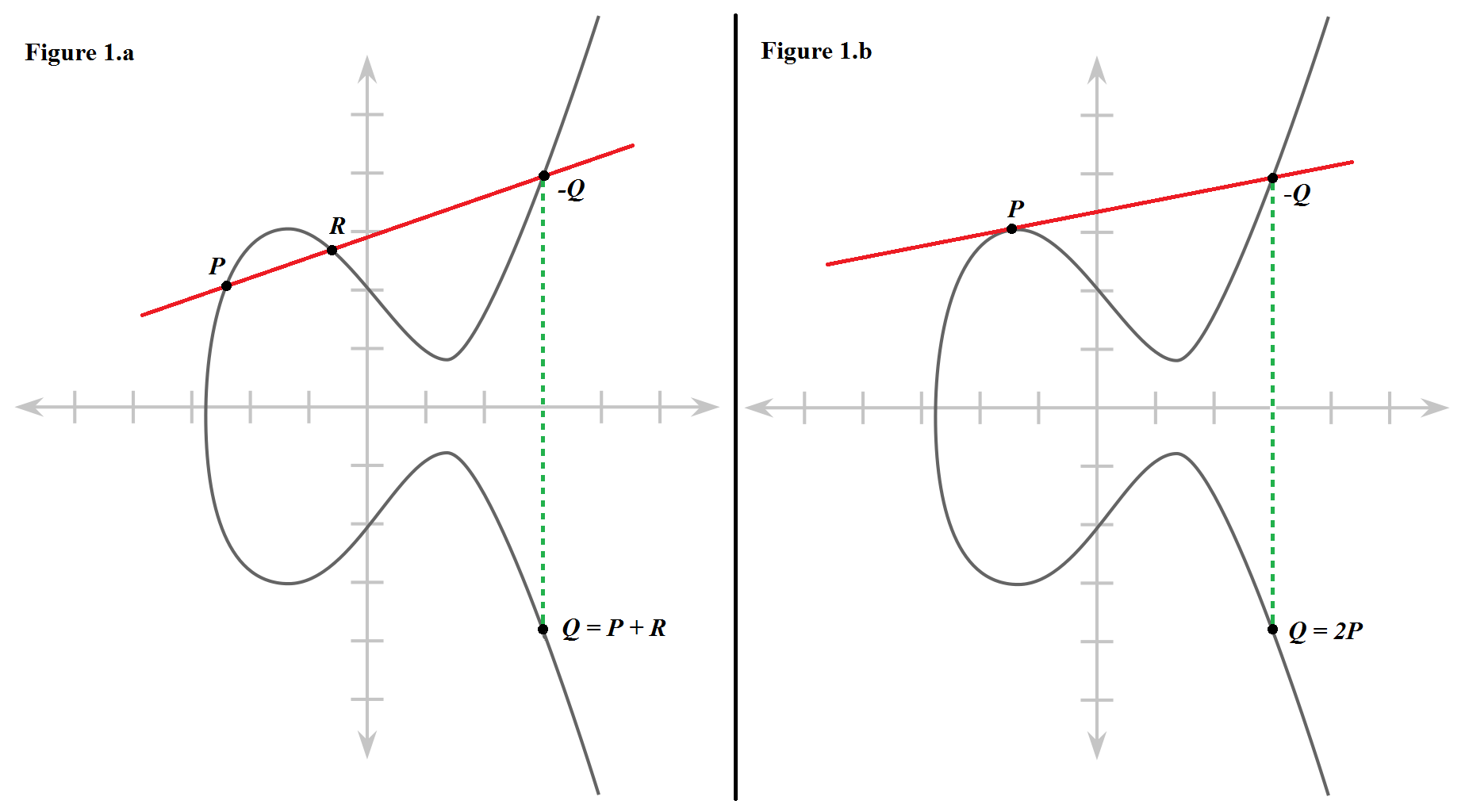 Précédemment, nous avons vu la possibilité d’effectuer deux opérations mathématiques bien précises sur les courbes elliptiques :