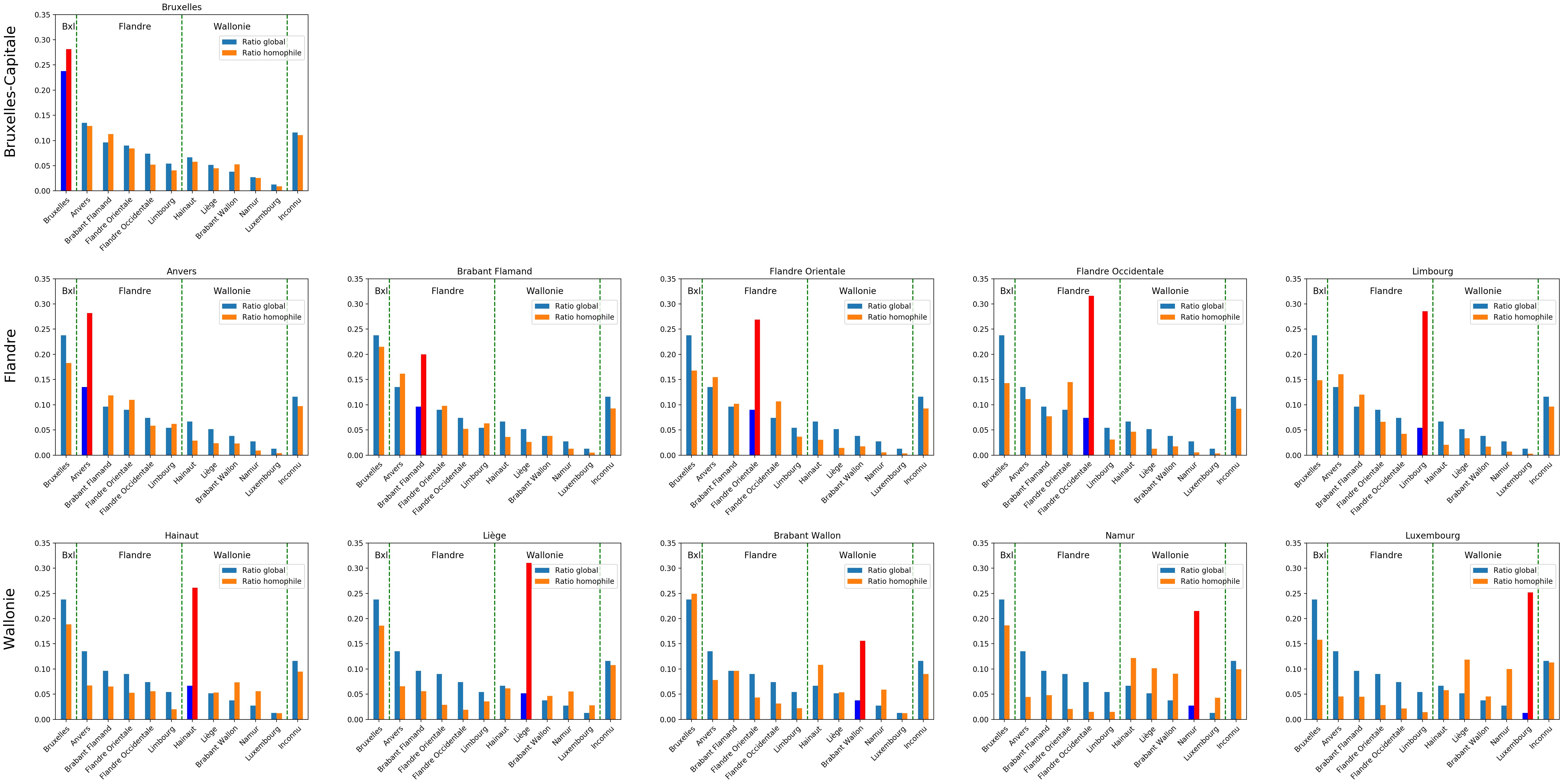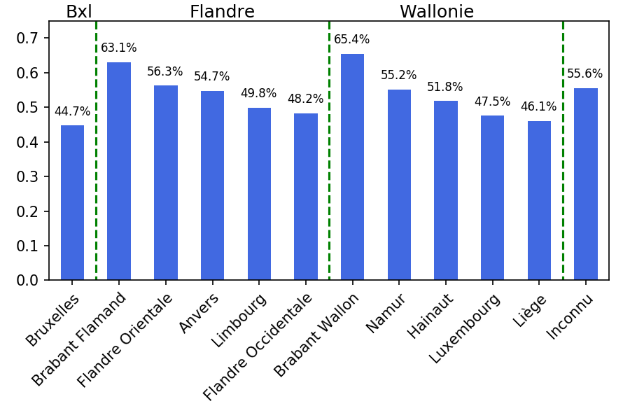 - En dehors de Bruxelles, le voisinage d’une province reste majoritairement dans la même région (Flandre ou Wallonie)