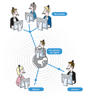 – En mode synchrone via téléphone, chat ou Web conferencing (ces moyens devant être idéalement intégré à la plate-forme LMS).